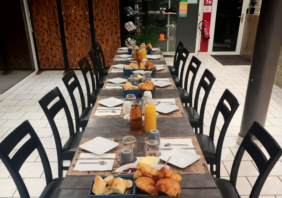● Repas “maison” (sur place ou à emporter). ● Restaurant : jeudi → dimanche (avril-juin / sept-oct) ; 7j/7 en été. ● Bar : ouvert tous les jours (sur horaires réception). ● Petits-déjeuners sur réservation : 9 € HT / personne.